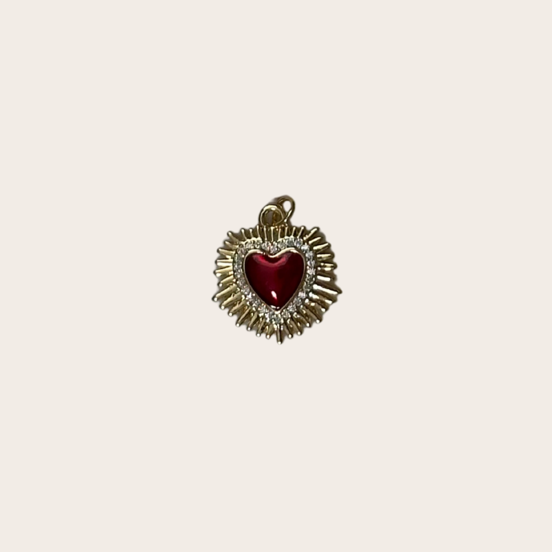 Red Diamonds Golden Sacred Heart Charm